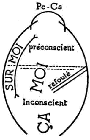 Comme vous le voyez, le surmoi plonge dans le ça ; en effet, en tant qu’héritier du complexe d’Œdipe, il a des relations intimes avec lui, il se trouve plus éloigné du système de perception que le moi. Le ça n’a de rapport avec le monde extérieur que par l’intermédiaire du moi, du moins dans ce schéma. II est assurément difficile de dire aujourd’hui dans quelle mesure ce dessin est exact ; en un point il ne l’est assurément pas. L’espace qu’occupe le ça inconscient devrait être incomparablement plus grand que celui du moi ou du préconscient.