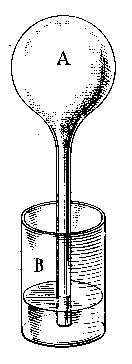 Une expérience remarquable a été faite naguère qui cause beaucoup de tourment aux partisans du vide, et en revanche donne beaucoup de satisfaction aux partisans du plein. Voici en quoi elle consiste. Un flacon de verre A entièrement rempli d’eau est renversé dans un vase de verre B contenant également de l’eau. Le tout est placé sous la cloche de la nouvelle machine pneumatique de M. Boyle, et l’on y fait le vide.
