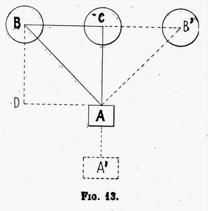 Pour que les Lecteurs ne confondent pas ici la force de détermination avec la force du mouvement, il a paru bon d’ajouter quelques observations établissant clairement la distinction de ces deux forces. Si donc l’on conçoit deux corps égaux A et C se mouvant directement l’un vers l’autre avec des vitesses égales, ces deux corps (par la Proposition 24, partie II) rejailliront du côté opposé en gardant tout leur mouvement. Mais, si le corps C est en B et se meut obliquement vers A, il est clair qu’il a une détermination moindre à se mouvoir suivant la ligue BD ou CA. Donc, bien qu’il ait autant de mouvement que A, la force de détermination de C se mouvant directement vers A, qui est égale à la force de déterminations du corps A, est plus grande que la force de détermination du même C se mouvant de B vers A ; et d’autant plus grande quel la ligne BA est plus grande que la ligne CA ; car plus la ligne BA l’emporte en grandeur sur la ligne CA, plus il est requis de temps (le corps situé en B et A étant supposés ici se mouvoir avec la même vitesse) pour que le corps situé en B puisse se mouvoir suivant la ligne BD ou CA par laquelle il est opposé à la direction de A. Et ainsi, quand C venant de B rencontre A obliquement, il est déterminé tout de même que s’il devait continuer à se mouvoir vers B’ suivant la ligne AB (B’ étant un point de la ligne BC prolongée situé à la même distance de C que B). A cependant, gardant tout son mouvement et toute sa détermination, continuera à se mouvoir vers C et poussera avec lui le corps situé d’abord en B ; puisque ce corps, aussi longtemps qu’il est déterminé à se mouvoir suivent la diagonale AB’ et se meut avec la même vitesse que A, a besoin de plus de temps pour décrire une partie quelconque de la ligne AC et est opposé en cela même à la détermination plus forte de A. Mais, pour que la force de détermination de C se mouvant de B vers A soit égale à la force de détermination du même C se mouvant directement vers A (force égale par hypothèse à celle de A), il est nécessaire que le corps situé en B ait autant de degrés de mouvement de plus que le corps A, que la ligne BA a de longueur de plus que la ligne CA et alors, quand ce corps rencontrera le corps A obliquement, il sera renvoyé vers B’ dans une direction opposée à celle qu’il suivait et A vers A’ l’un et l’autre gardant tout leur mouvement. Par contre, si l’excès de mouvement du corps situé en B l’emporte sur l’excès de longueur de la ligne BA sur la ligne CA, alors ce corps repoussera A vers A’ et lui communiquera une partie de son mouvement jusqu’à ce que l’égalité des deux excès s’établisse (c’est-à-dire qu’il y ait entre les mouvements des deux corps le même rapport qu’entre les lignes BA et CA), perdant lui-même autant de mouvement qu’il en cède et continuera à se mouvoir du même côté qu’avant la rencontre. Par exemple, si la ligne AC est à AB comme 1 à 2 et le mouvement du corps A à celui du corps situé en B comme 1 à 5, ce dernier corps transportera dans A un degré de son mouvement, le repoussera du côté opposé et continuera lui-même à se mouvoir dans la direction qu’il suivait avec quatre degrés de mouvement.