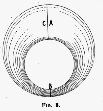 Si un canal circulaire ABC est plein d’eau et qu’il soit en A quatre fois plus large qu’en B, dans le temps que l’eau (ou tout autre corps fluide) qui est en A commence à se mouvoir vers B, l’eau qui est en B se mouvra quatre fois plus vite.