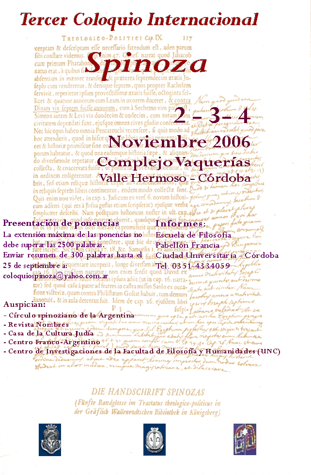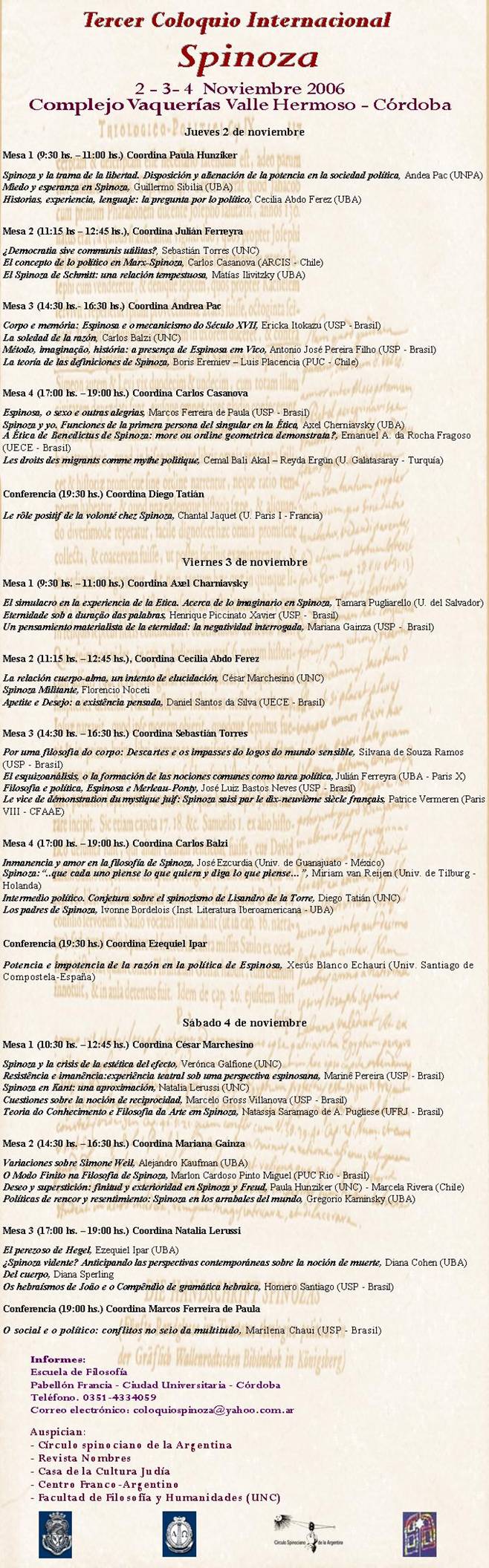 Tercer Coloquio Spinoza - Programa 3er Coloquio Internacional Spinoza Accueil > Autour de l’oeuvre 2 : Actu, Biblio et Web > Actu > Infos Spinoza-Argentina > Tercer Coloquio Spinoza - Programa 3er Coloquio Internacional Spinoza Programa 3er Coloquio Internacional Spinoza Tercer Coloquio Spinoza