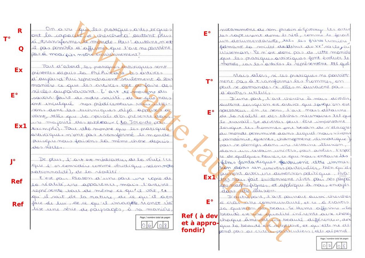 Les pratiques artistiques transforment-elles le monde ? Accueil > 2025 > Les pratiques artistiques transforment-elles le monde ? Voici une excellent copie d’élève de terminale. Les annotations permettent de guider la lecture vers les éléments de méthode mis en oeuvre.