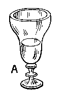 La deuxième expérience (par laquelle je crois pouvoir montrer que les parties fixes ne sont autre chose qu’une impureté du salpêtre) consiste dans cette constatation, faite par moi, que plus complète est la défécation du salpêtre, plus aussi il est volatile et capable de cristalliser. Quand, en effet, je place des cristaux de salpêtre, après défécation et filtrage, dans un vase de verre tel que A, et qu’ensuite j’y verse un peu d’eau froide, aussitôt il s’évapore en partie, et des particules restent adhérentes aux bords inférieurs du vase et forment des cristaux.