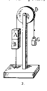 Dans la figure 2, soit F un fil de soie assez fort par lequel le marbre B est retenu au sol. D est une poulie, G un poids qui montre quelle force est nécessaire pour écarter le marbre A de B suivant une ligne perpendiculaire à l’horizon.